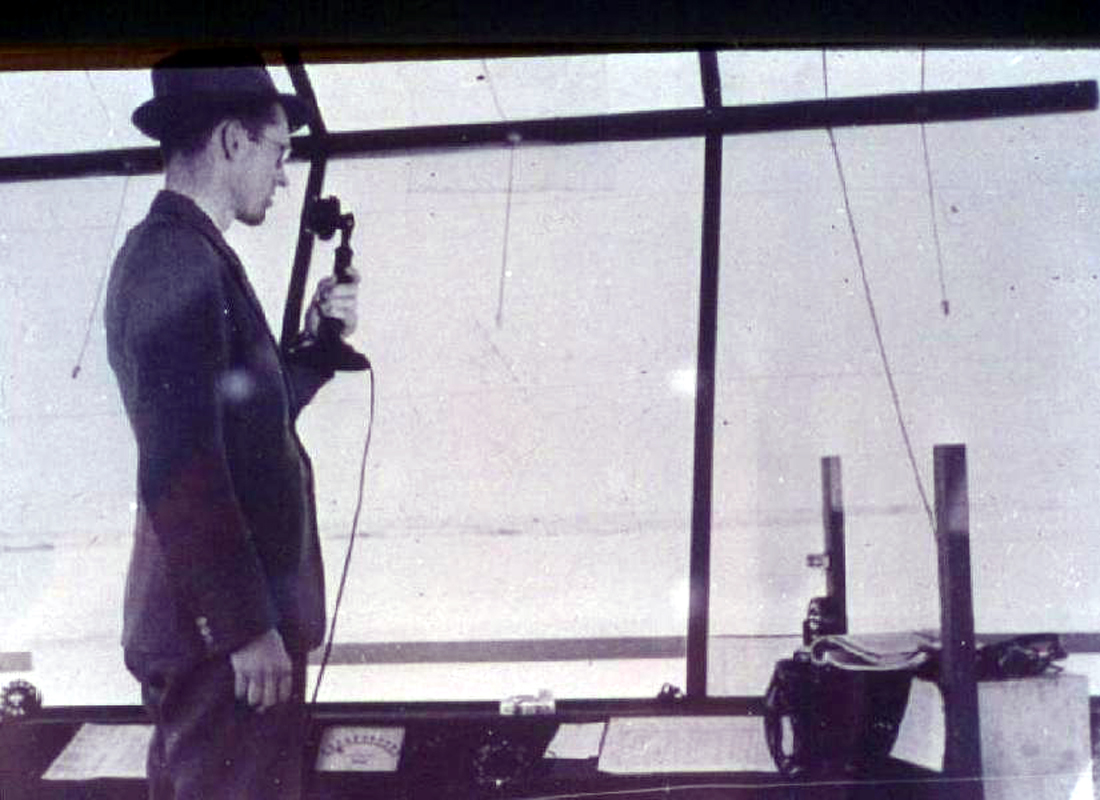 was begun. It was a freestanding 16-foot square unit set on 35-foot steel legs. The tower opened in September 1940 but all did not go well during the ensuing months. All those bright young men with flying experience suddenly heard a call to greater things either in the Air Force or in associated flying jobs.
